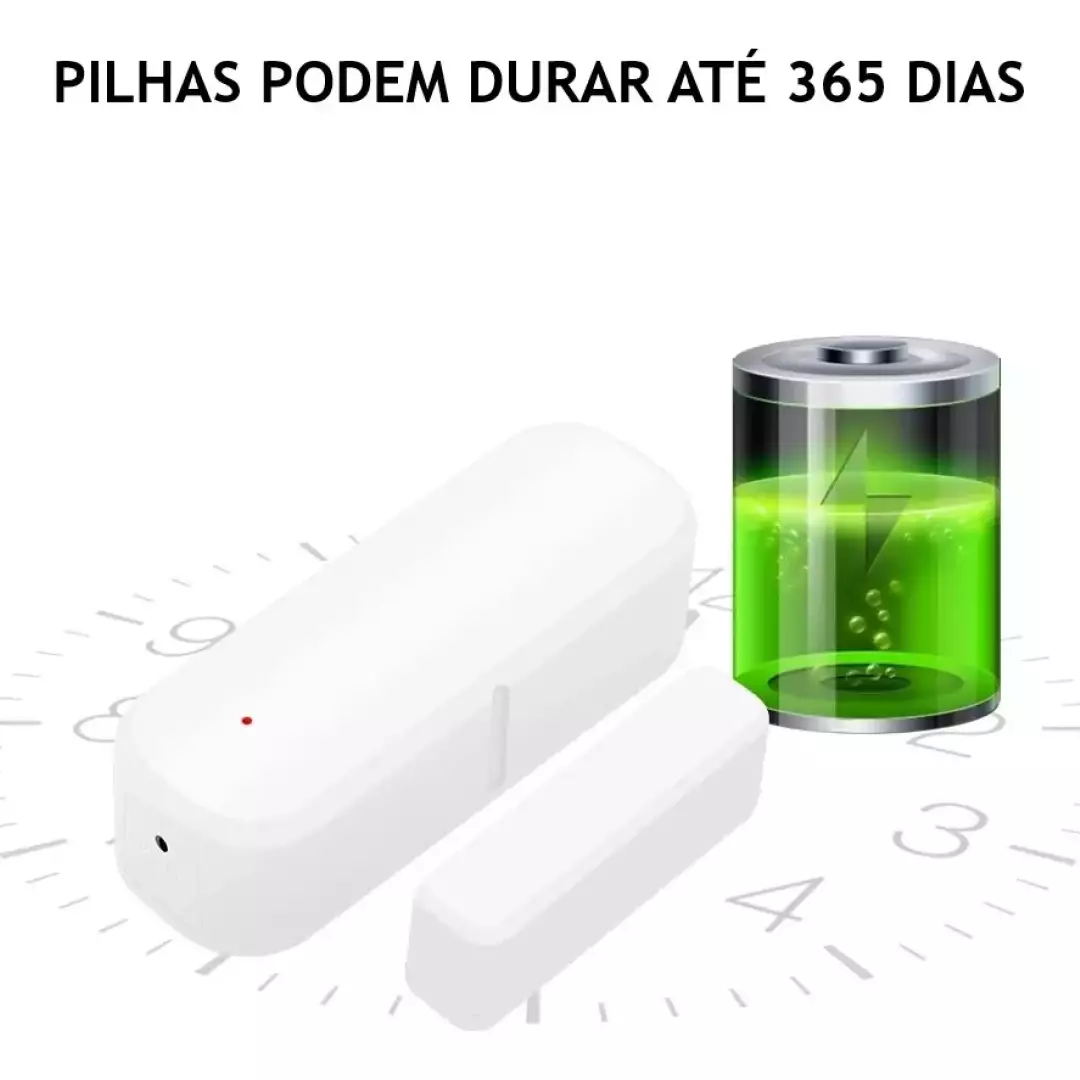 Não precisa de fios! Basta fixar o sensor na porta ou janela com a fita adesiva inclusa. A instalação é rápida e você mesmo pode fazer.