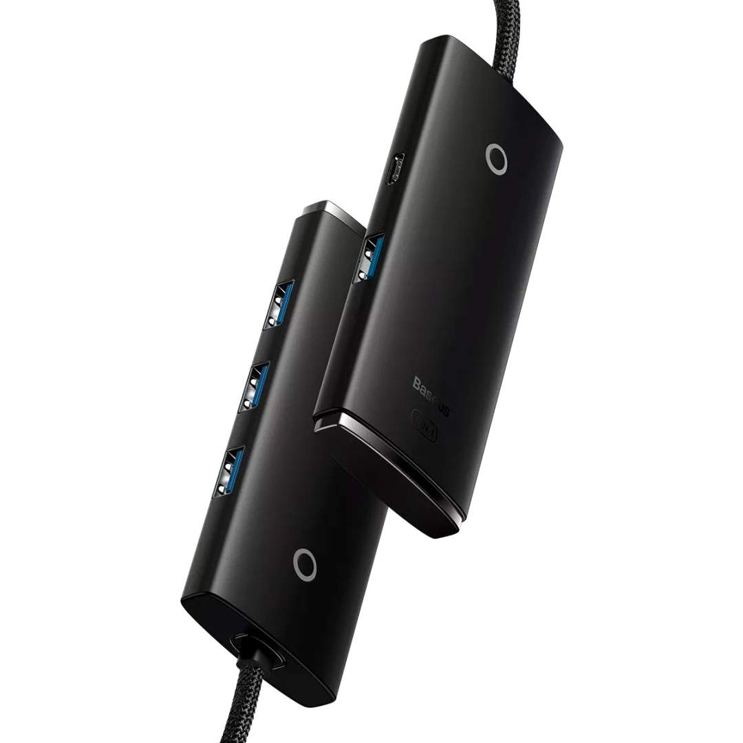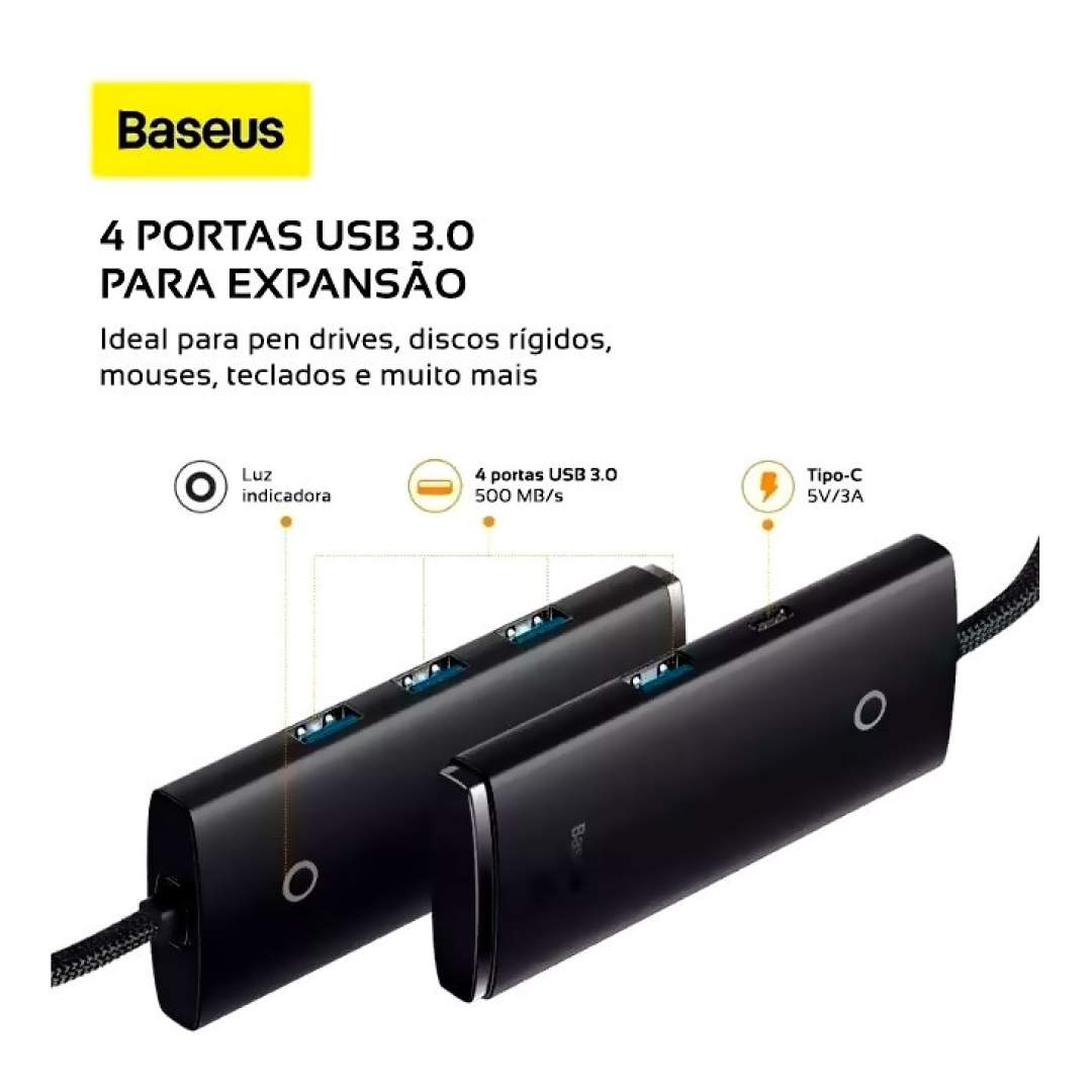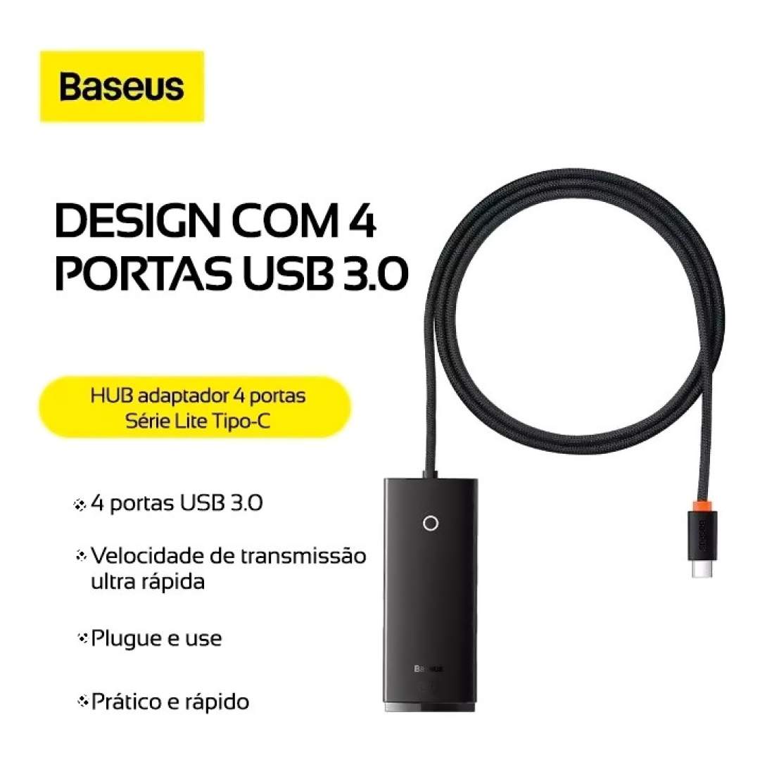 - 1 Hub USB-C Baseus Lite (4 portas USB-A + 1 porta USB-C).